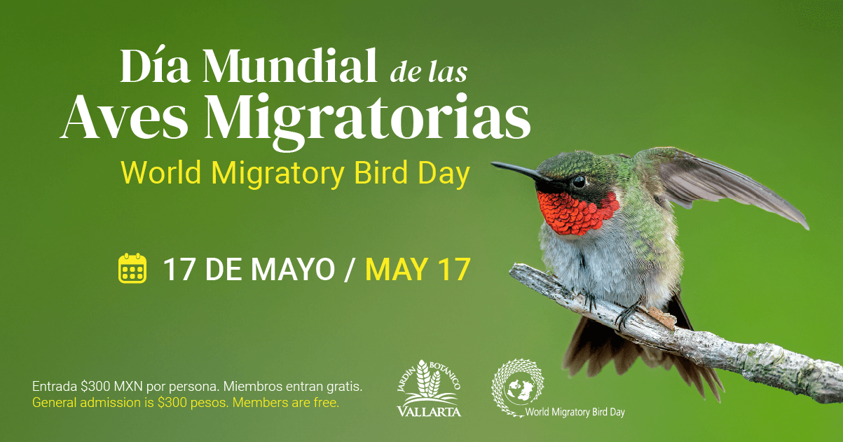 May 17 9:00 am - 2:00 pm Día Internacional del Ave Migratoria / World Migratory Bird Day Jardín Bótanico de Vallarta Carretera Puerto Vallarta a Barra de Navidad KM 24, Cabo Corrientes Event Details Get Directions