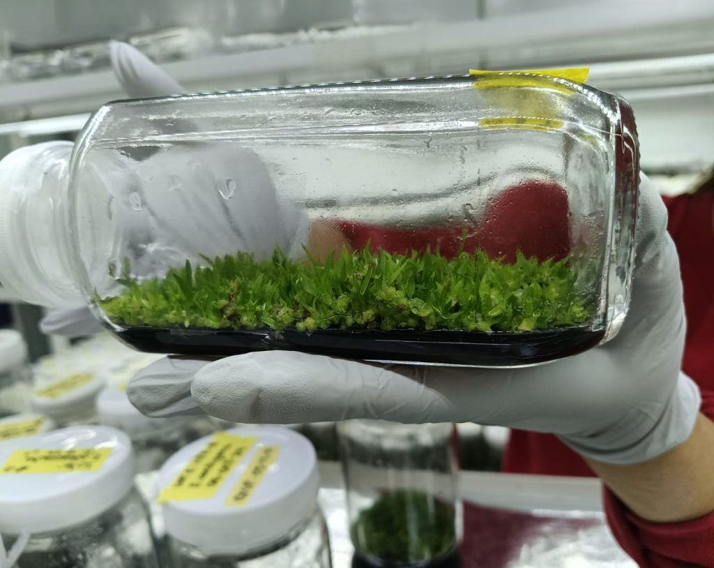 La germinación fue exitosa, por lo cual se han sembrado más semillas y actualmente poseemos varios frascos con plántulas (plantas bebés) para su pronto paso al Invernadero, ayudando así a su conservación.