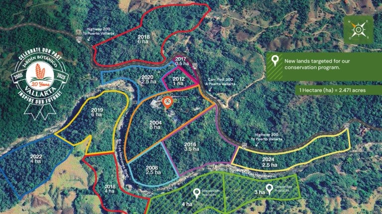 In 2010, the Botanical Gardens was registered as a Wildlife Conservation Management Unit with the Mexican Ministry of Environment and Natural Resources. Since then, thanks to philanthropic support, we have been able to acquire and protect a full 120 hectares of forest land in the river basin, of which 32 of them have been certified as protected natural areas by the Government of the State of Jalisco (Certificate AEDVC-002-2023). We are working now to secure legal status for the remaining hectares.